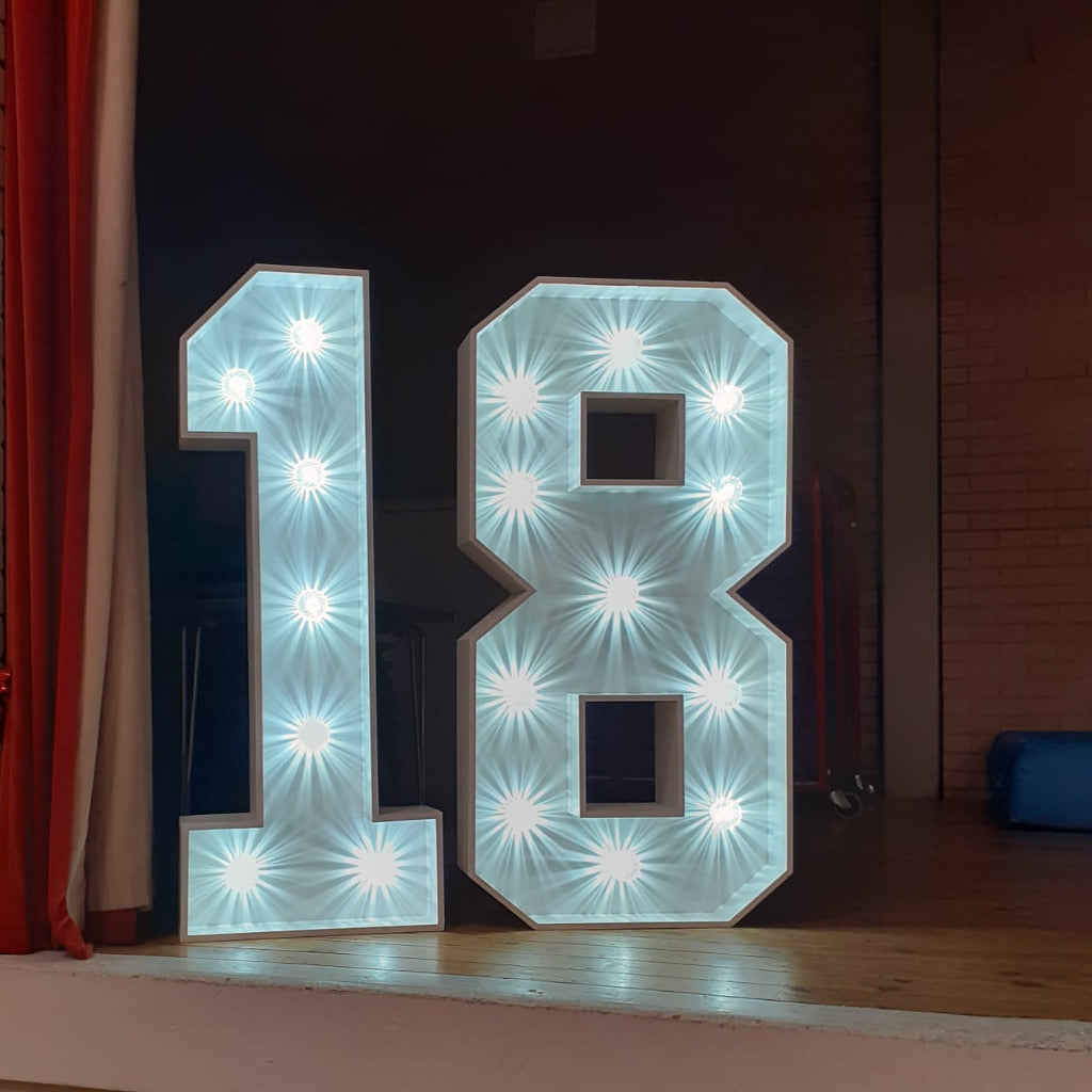 Add a touch of magic to your special occasions with our stunning 4ft LED Light Up Numbers, perfect for birthdays, anniversaries, and any celebration. These giant illuminated numbers serve as a breathtaking statement piece, enhancing the ambiance of your event and creating unforgettable photo opportunities.