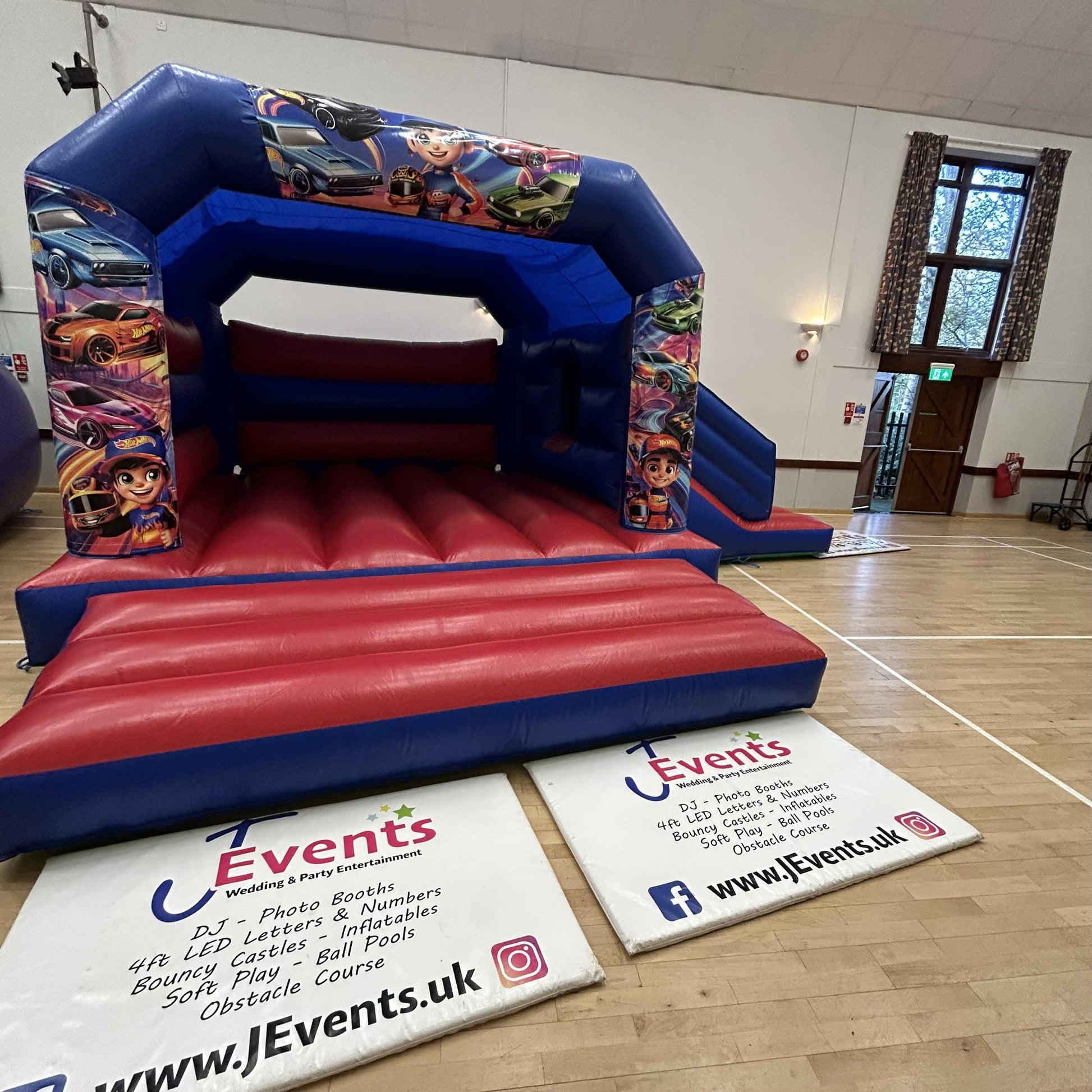 Rev up the excitement at your next event with our Red & Blue Hot Wheels Bounce 'n' Slide inflatable! This vibrant bouncy castle features a thrilling slide at the front, making it the perfect centerpiece for any car-themed party or gathering. With stunning artwork showcasing a variety of beloved Cars characters, this inflatable is sure to delight young guests and fuel their imaginations..