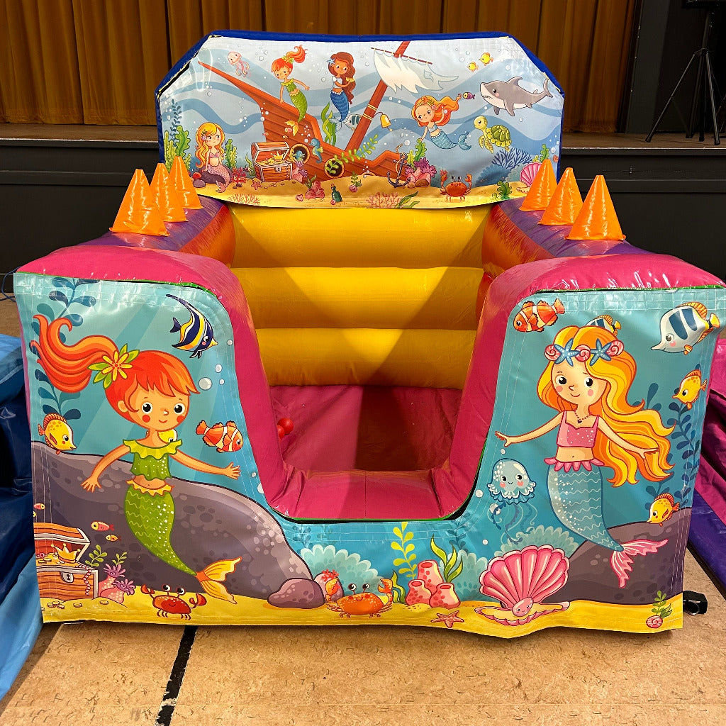 Transform your event into a vibrant aquatic adventure with our Multicoloured Mermaid Inflatable Ball Pool. Designed to hold approximately 2,500 colorful balls, this inflatable ball pit offers endless fun for children of all ages. Its unique air jugglers along the sides create a magical experience, allowing the balls to float in mid-air, adding an extra layer of excitement to playtime!