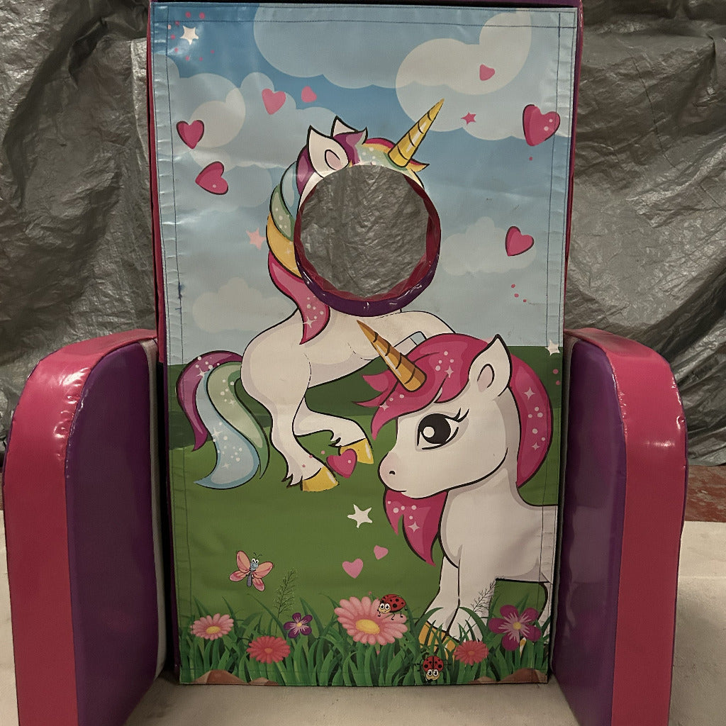 Standing at an impressive 130 centimeters tall, this vibrant and whimsical cutout invites everyone to step in and pretend they're a unicorn! The 3-piece collapsible soft play stand makes it easy to set up and transport, ensuring fun is just a moment away. Available for hire with free delivery on bookings over £50.00 (a delivery charge may apply to orders under this threshold).